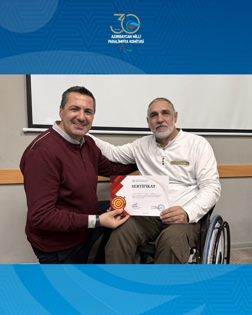 Azərbaycan Kamandan Oxatma Federasiyası tərəfindən təşkil olunan iki günlük təlim proqramında parakamandan oxatma üzrə milli komandamızın baş məşqçisi İlqar Abbasov, paralimpiyaçılarımız Əli Nəbiyev və Şahin Cabbarov da iştirak ediblər.